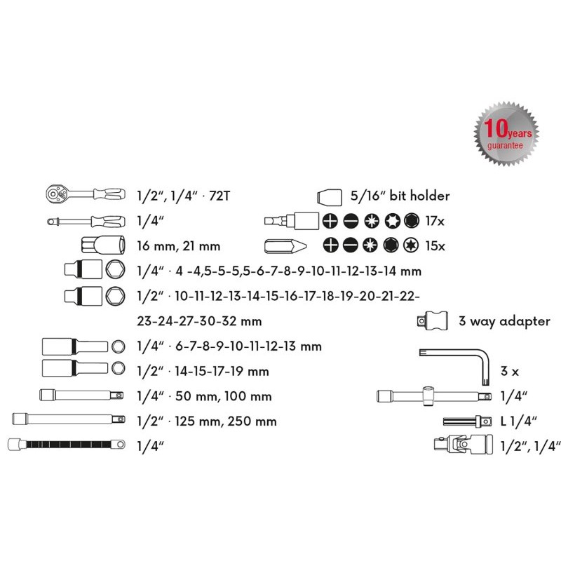 Všechny části jsou vyrobeny z vysoce kvalitní chrom-vanadiové oceli.