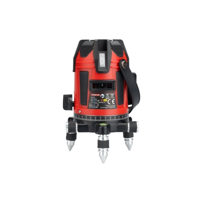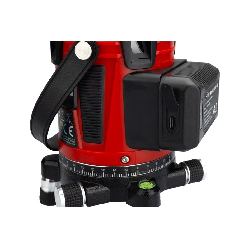 1x horizontální rovina + 4x vertikální rovina, funkce olovnice - promítání červeného bodu na podlahu (při použití na stativu, je nutné zvolit variantu s dutým závitem!)