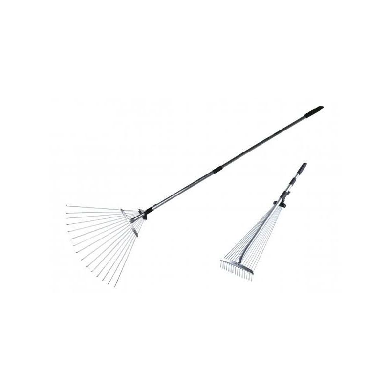 Švédské hrábě s kovovým klipem - pojistkou, nastavitelná rozteč lamel, teleskopická rukojeť.