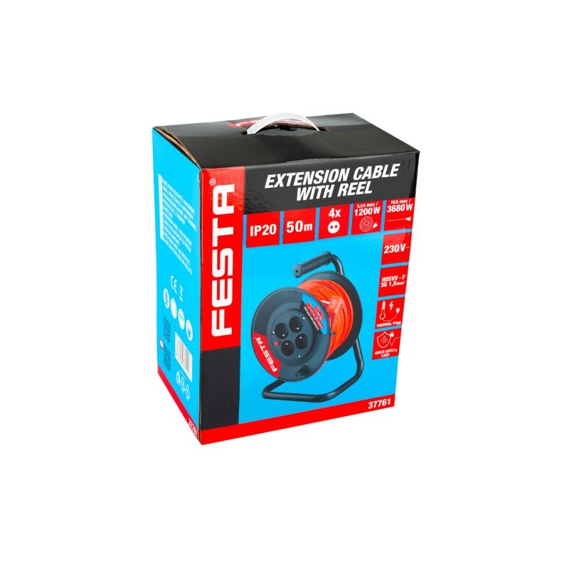 maximální zatížení - rozvinutý buben 3680 W (16 A) / navinutý max 1200 W (5,2 A)